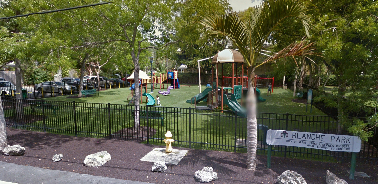 After a recap of previous events, the episode starts out with Madeline in a small park/playground meeting with Michael. This was filmed on location (on Friday 08/10/2012) in Blanche Park. This park is not far from the studio, located at the intersection of Allamanda Street and Shipping Avenue in Coconut Grove. Madeline is seated just inside the park at the SW corner of the park by the intersection of Allamanda Street and Shipping Avenue.