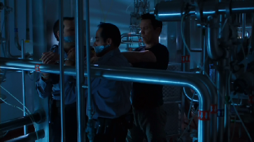 Anson has run off to a factory. The factory is real but the location as shown here is fake, clearly digitally created.