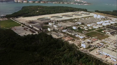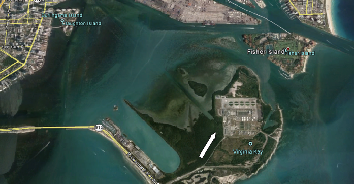 Then we see an aerial view of Miami’s waste water treatment plant on Virginia Key.