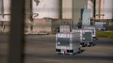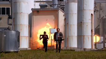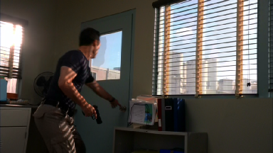 Then we cut back to the factory where Michael has warned them just in time. Factory scenes filmed at 3000 NW 123rd Street. Michael is still at Miami Seaquarium except for four short cuts where he is at the factory.