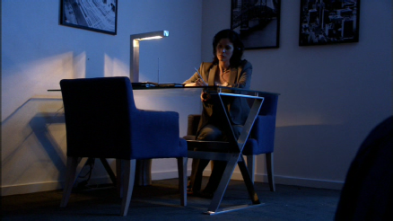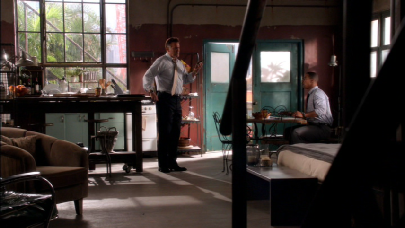 Then we cut to Michael’s loft. Filmed on set inside the Coconut Grove Convention Center Studio.