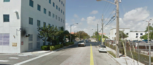 Then Sam hits the road again, tracking the escapees. We see them driving thru the intersection of NW 9th Ave and NW 3rd Street and stop outside the warehouse.
