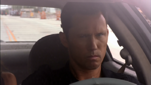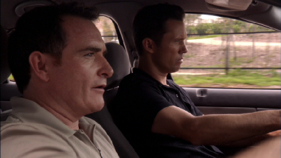 Then we see Sam driving westbound on NE 18th Street away from North Bayshore Rd. We have seen this location used before in episode 21, Good Soldier, episode 74, Dead To Rights, and episode 76, Breaking Point.
