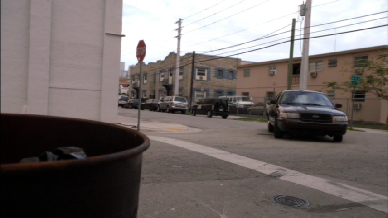 Then Michael turns into a garage to continue the story line instead of continuing straight down the sidewalk where he had a clear shot to get away. He turns into the Madison, 800 N. Miami Ave.