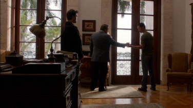 Then we cut to Jesse and Pearce doing their scam. Filmed inside the Gansevroot Hotel.