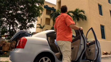 They notice a suspicious van at the rear of the Miami Woman’s Club. Filmed there on location.