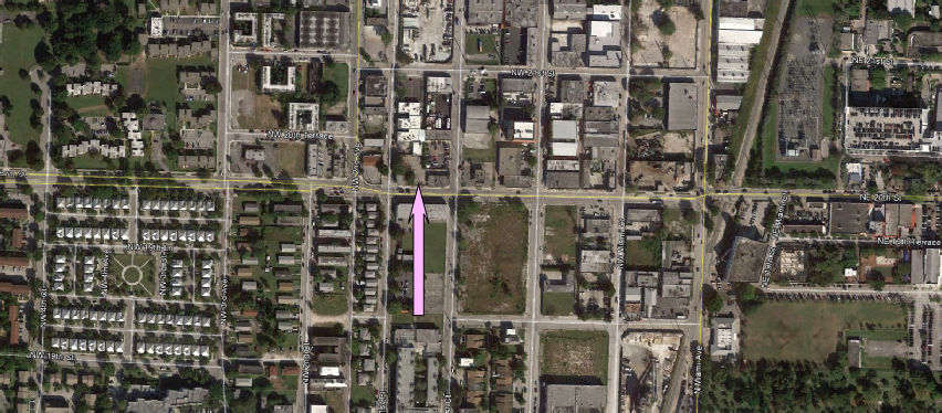 In the view below the camera is viewing North Northwest and Promo at 2210 NW Miami Ct. is seen across the street with the Salvation Army past Promo.