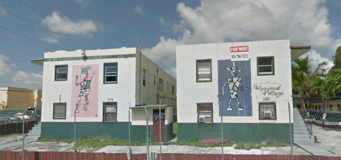 Then we see the gang in Panama working on their plan. We first see armed men outside a building. Filmed on location in Miami, they are guarding the Salvation Army Adult Rehabilitation Center in the 2200 block of NW Miami Court.