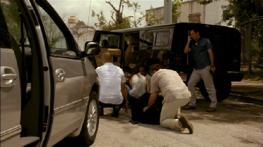 Right away they spot the Hummer pulled over on the east side of NW 5th Avenue at the rear entrance of 318 NW 23rd Street. We have seen this building used before in the Movie 2 Fast 2 Furious as well as in the Burn Notice episode 30, Question and Answer.