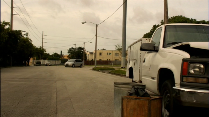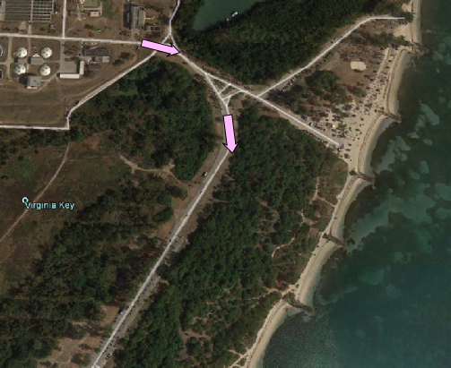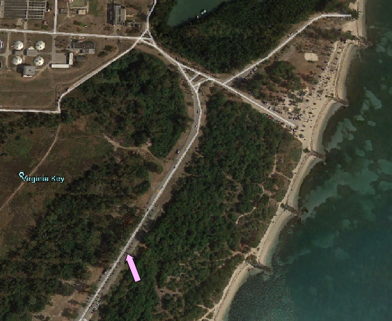 Then we cut to the van pulling out of the waste water treatment plant on Virginia Key. They travel onto Arthur Lamb Jr. Road.