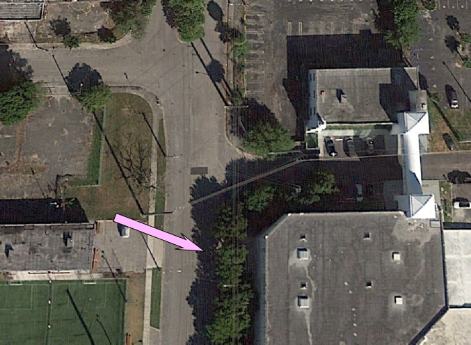 Then we see them stop the van on Arthur Lamb Jr. Road opposite the parking lot.