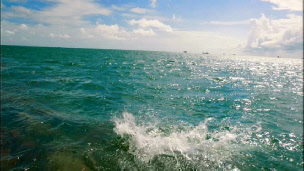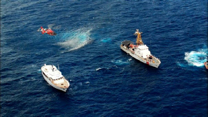 They take to the bay. It becomes a bit annoying when the Coast Guard is threatening force if they don’t stop but most of the filming has clearly shown all boats at either full stop or barely making headway. The only time they are on the move is when they are about to fire warning shots. Filmed on Biscayne Bay south of Key Biscayne.