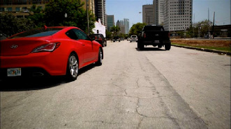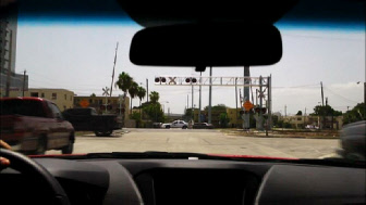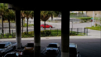 Then we see inside the car. Filmed in the same location on NW 1st Avenue but now they are facing north.