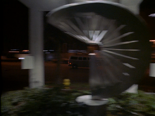 When the view switches to eastward, we see the sculpture that was prominently seen in episode 3 of Miami Vice, Cool Runnin’. The first time I recall seeing this location used on film.