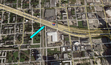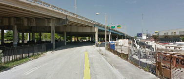 Then eastbound on NW 13th Street away from NW 1st Avenue. In the near background we see the famous location from the Miami Vice Pilot, Brother’s Keeper, where Corky and Eddie get blown up underneath the “59th Street Bridge” (395).