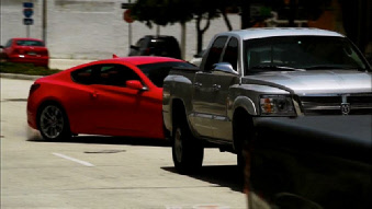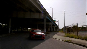 Then we see several cuts inside the car where little is seen of the outside so the location cannot be determined.