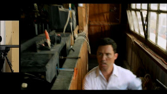 They gain entrance in the alleyway toward the rear of the building. They then chase Michael thru the building. Filmed on location at and in the Grove Key Marina.