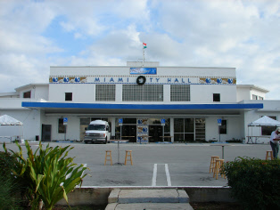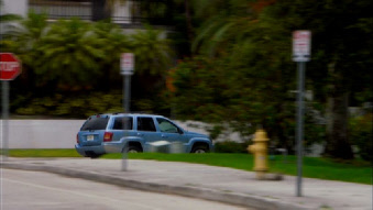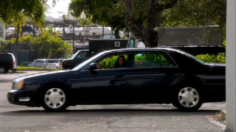 They take off leaving Michael behind as planned. They exit thru a door created for this scene at the front of the studio just north of the main entrance. Fiona picks them up as the Grove Key Marina is seen in the background.