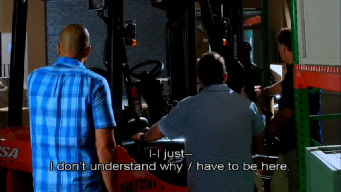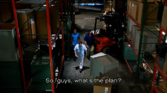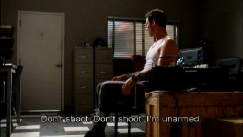 Then we go back inside to find a captive Michael. Filmed on studio set.