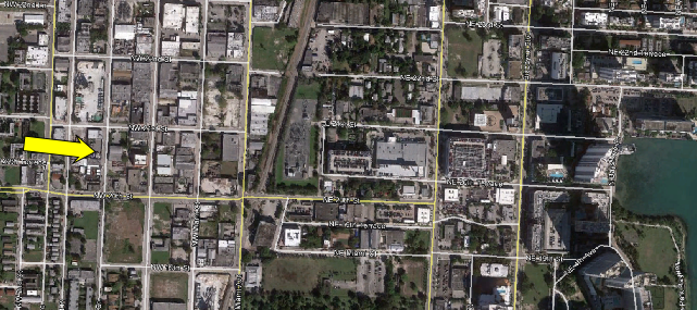 Then we drop down to street level. However, now we have moved to a new location and are looking at 2031 NW 1st Court. The Miami Rescue Mission is seen in the near background (2020 NW 1st Ave.).