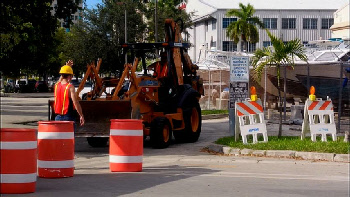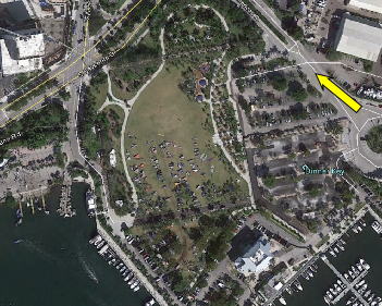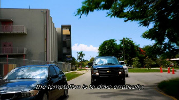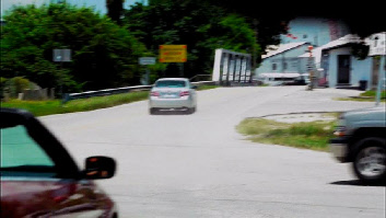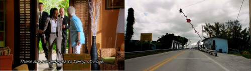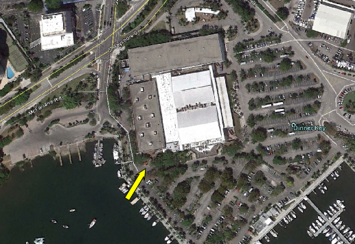 Then we see our crew make their escape. The road block was set up at the entrance to Grove Key Marina. In reality there is no way that Sam could have viewed the men setting up the trap as this location is well around the corner and out of view of the boat.