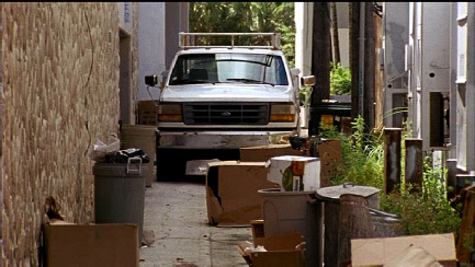 Then we see them arrive at Jabbar’s. This was filmed on location in the Coconut Grove alleyway that runs between Virginia Street and Rice Street south of Oak Avenue. We have seen this alley used previously in episode 44, Devil You Know and in episode 9, Hard Bargain which is how I recognized it.