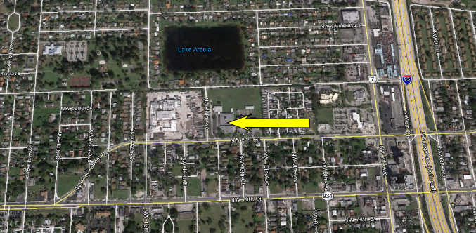 Then we return to the warehouse. First an aerial shot of Jacob Fleishman’s. 1177 NW 81st Street in Miami.