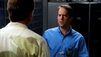 Then we see Sam go to work. Location unknown but likely a set at the Coconut Grove Convention Center Studio.
