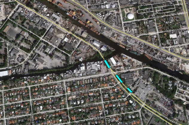 Madeline looses her tail by escaping over a draw bridge. This was filmed on location on NW South River Drive. A bridge first made famous in the Pilot of Miami Vice when Sonny had his boat stolen by Tubbs.